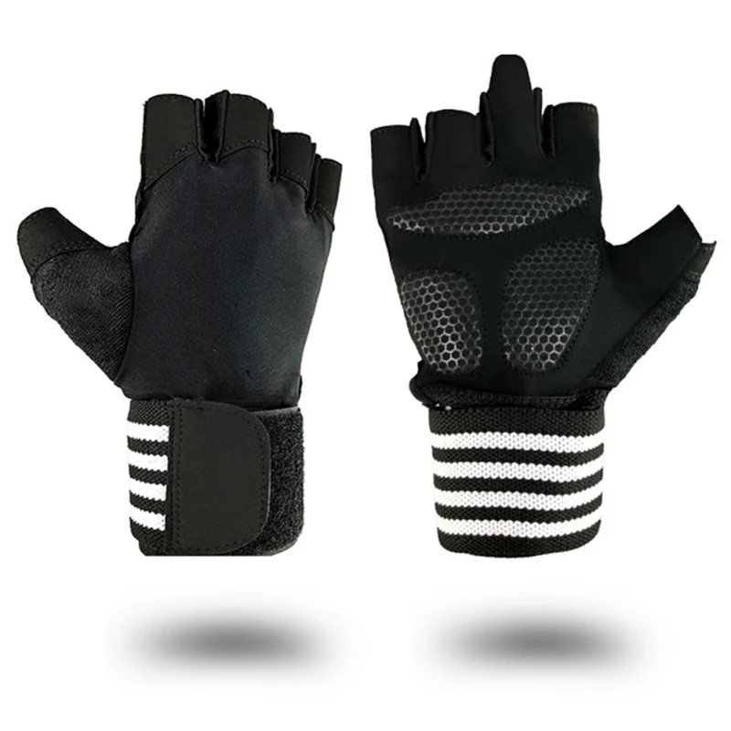 Fitness Breathable Cycling Gloves With Wrist Wrap Half Finger Gym Safety Anti Slip Shock Absorbing