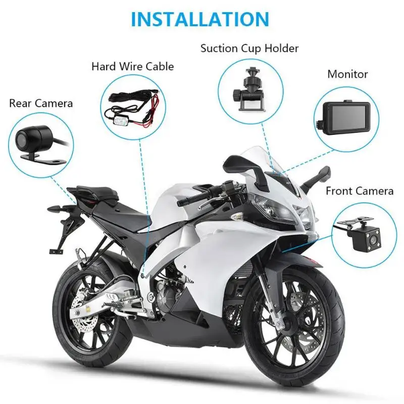 VODOOL SE600 3.0" Front Rear Dual Lens Motorcycle DVR Dash Cam 1080P HD Waterproof G-sensor Motorbi