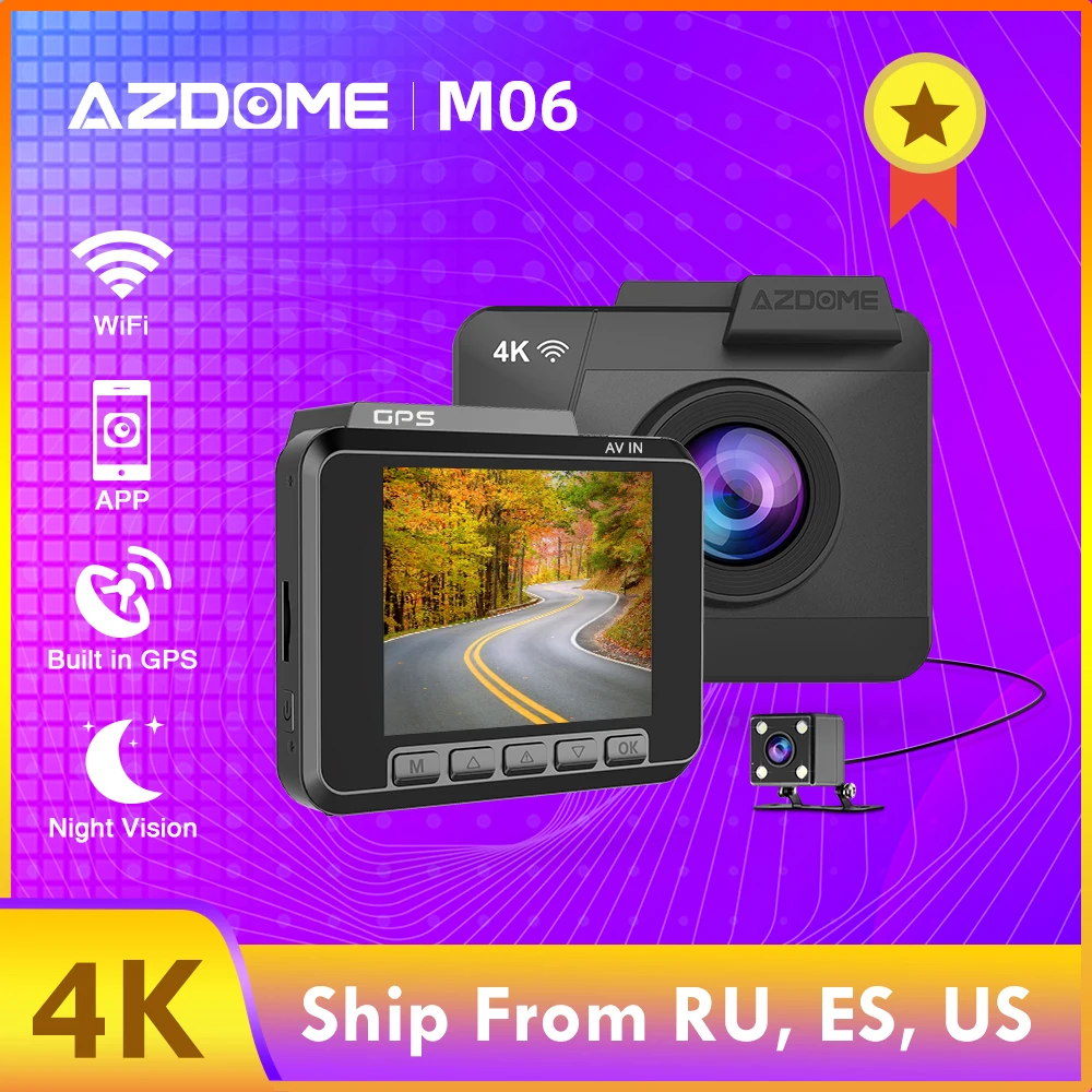 AZDOME WiFi Car DVRs Recorder M06 4K/2880*2160P Dash Cam Dual Lens Vehicle Rear Camera Built in GPS