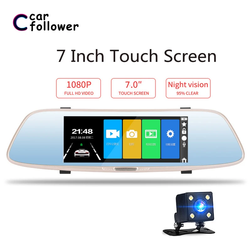 Dash Cam Car 7 Inch Touch Screen Full HD 1080P Night Vision Rearview Mirror G-Sensor Function Dual